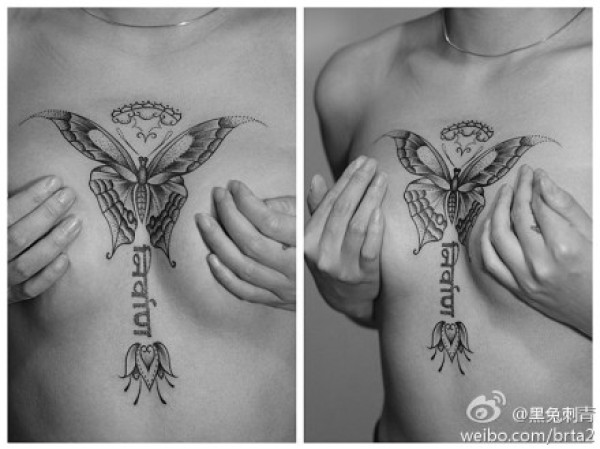 美女胸部好看精美的蝴蝶纹身图案_蝴蝶纹身图案大全_纹身图吧