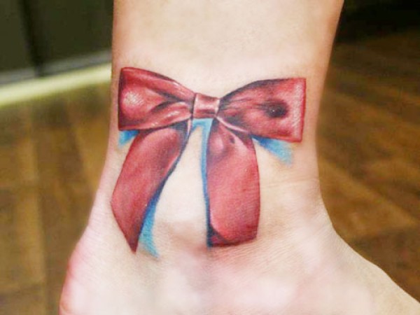 女生脚踝处小巧时尚的蝴蝶结纹身图案_蝴蝶纹身图案大全_纹身图吧