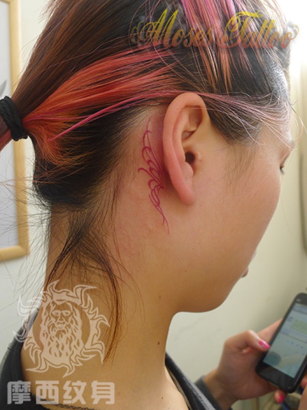 女生耳部精美流行的图腾蝴蝶纹身图案_蝴蝶纹身图案大全_纹身图吧
