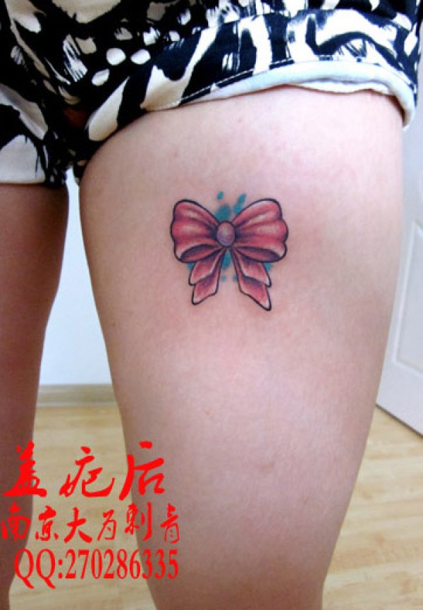 女生腿部时尚小巧的蝴蝶结纹身图案_蝴蝶纹身图案大全_纹身图吧