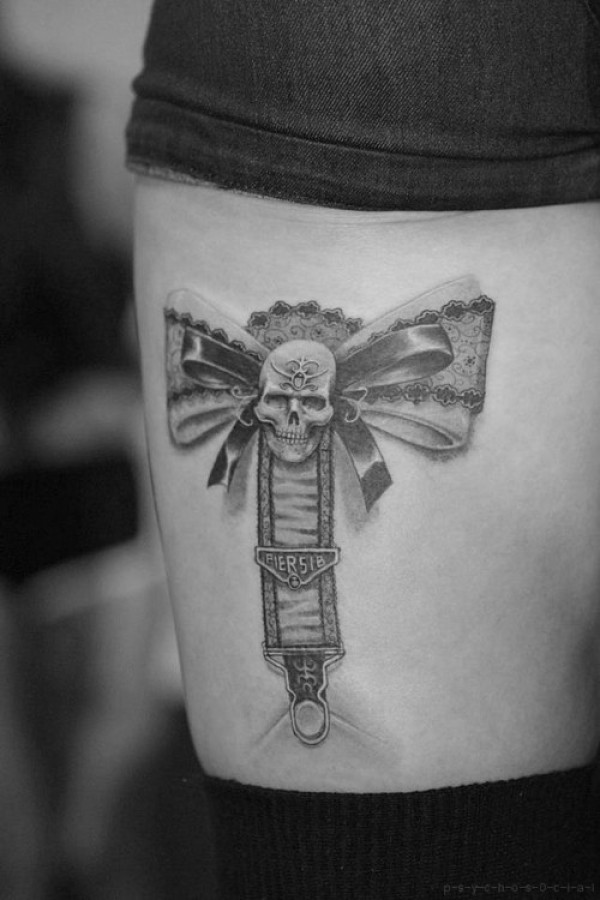 女生腿部时尚漂亮的蕾丝蝴蝶结纹身图案_蝴蝶纹身图案大全_纹身图吧
