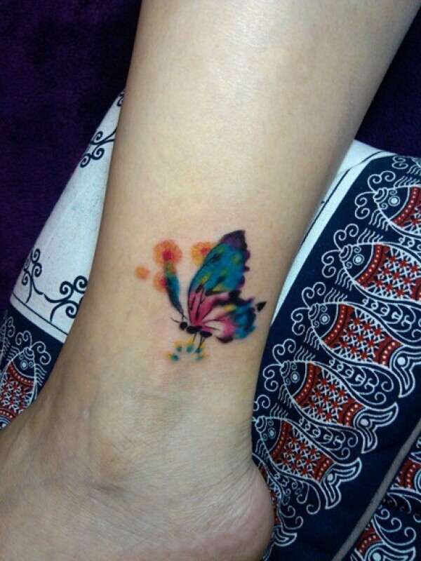 美女腿部漂亮时尚的彩色蝴蝶纹身图案_蝴蝶纹身图案大全_纹身图吧