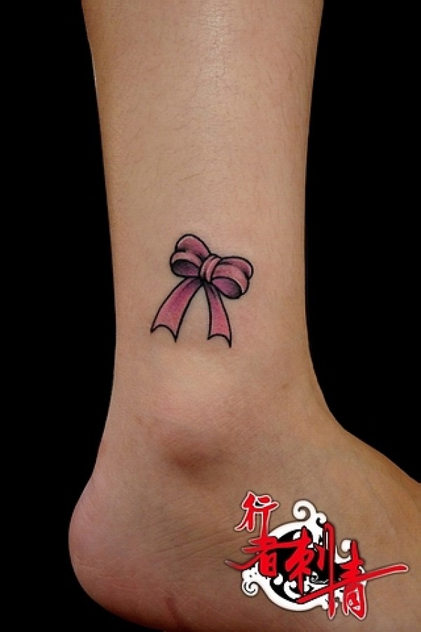 女生脚踝处小巧流行的蝴蝶结纹身图案_蝴蝶纹身图案大全_纹身图吧