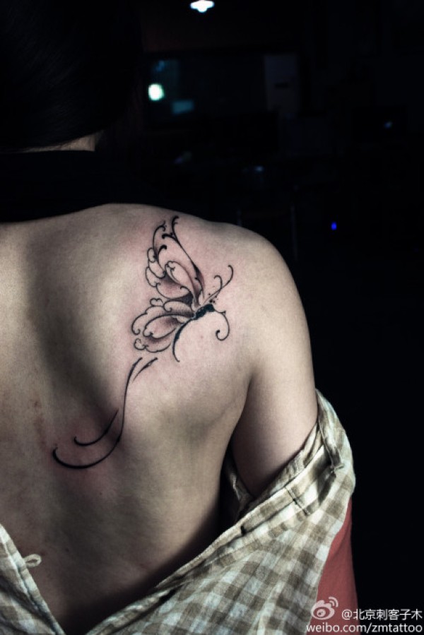 女生肩背好看唯美的黑白蝴蝶纹身图案_蝴蝶纹身图案大全_纹身图吧