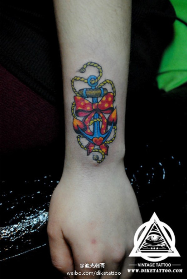 女生手臂好看的船锚与蝴蝶结纹身图案_蝴蝶纹身图案大全_纹身图吧