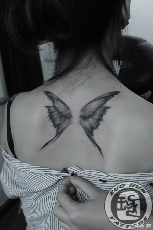 美女背部唯美漂亮的蝴蝶翅膀纹身图案_蝴蝶纹身图案大全_纹身图吧