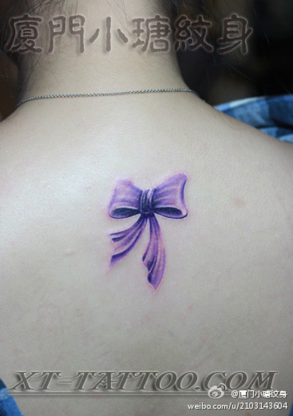 女生背部彩色小蝴蝶结纹身图案_蝴蝶纹身图案大全_纹身图吧