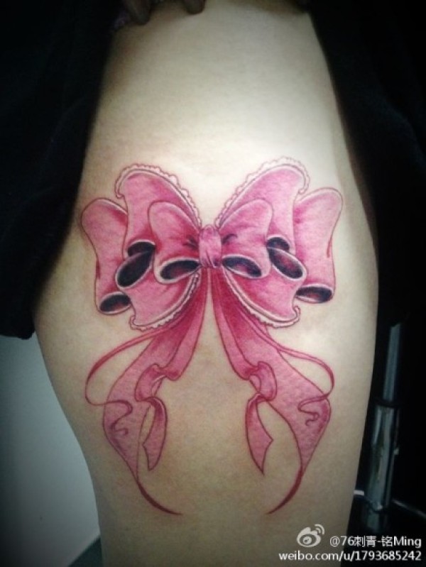 女生手臂好看精美的蝴蝶结纹身图案_蝴蝶纹身图案大全_纹身图吧