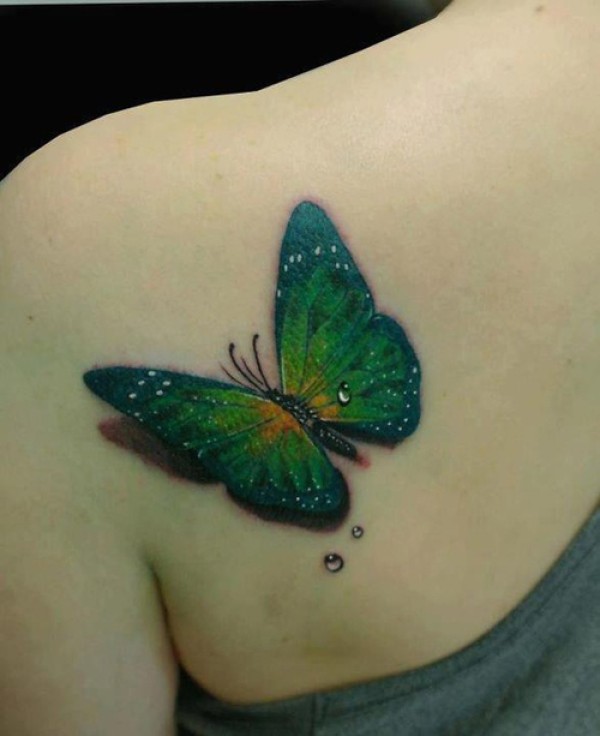 美女肩背漂亮的彩色蝴蝶纹身图案_蝴蝶纹身图案大全_纹身图吧