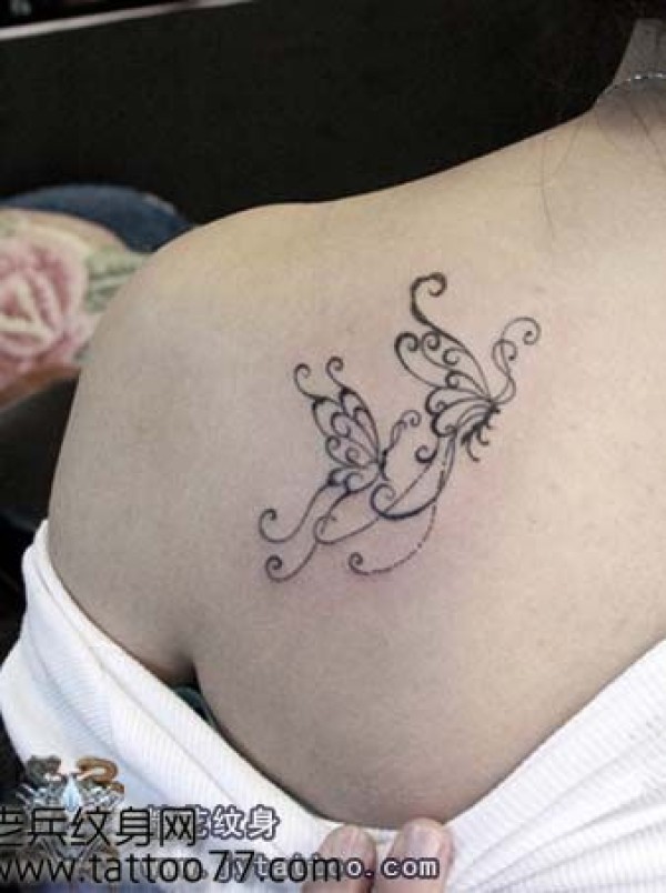 女孩肩背好看的图腾蝴蝶纹身图案_蝴蝶纹身图案大全_纹身图吧