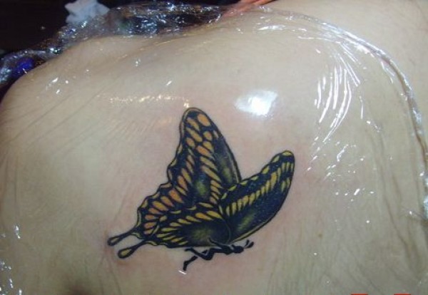 女孩肩背漂亮的蝴蝶纹身图案_蝴蝶纹身图案大全_纹身图吧