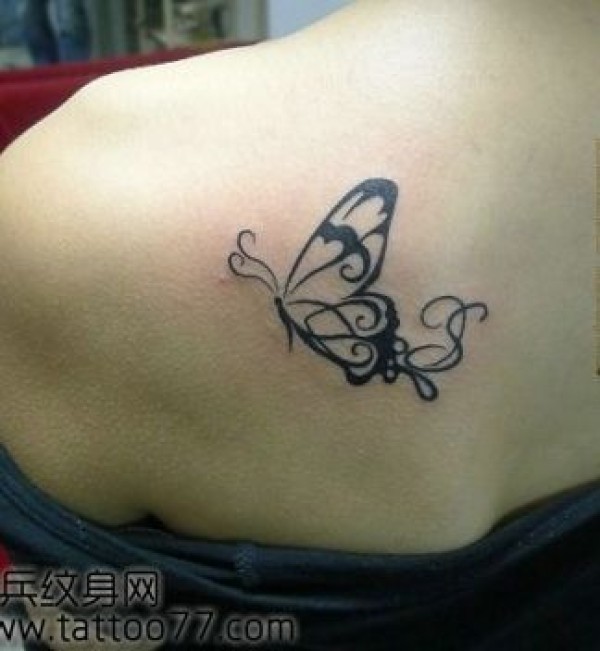 美女肩背唯美的图腾蝴蝶纹身图案_蝴蝶纹身图案大全_纹身图吧
