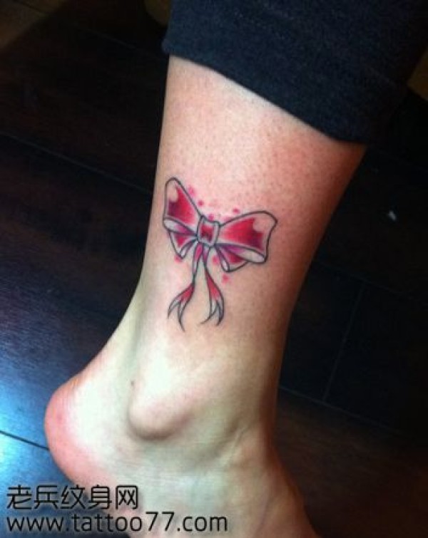 女孩子腿部一款小巧的彩色蝴蝶结纹身图案_蝴蝶纹身图案大全_纹身图吧