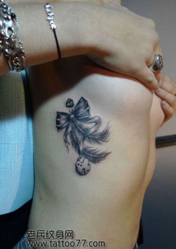 女孩子胸部精美的蝴蝶结与羽毛纹身图案_蝴蝶纹身图案大全_纹身图吧