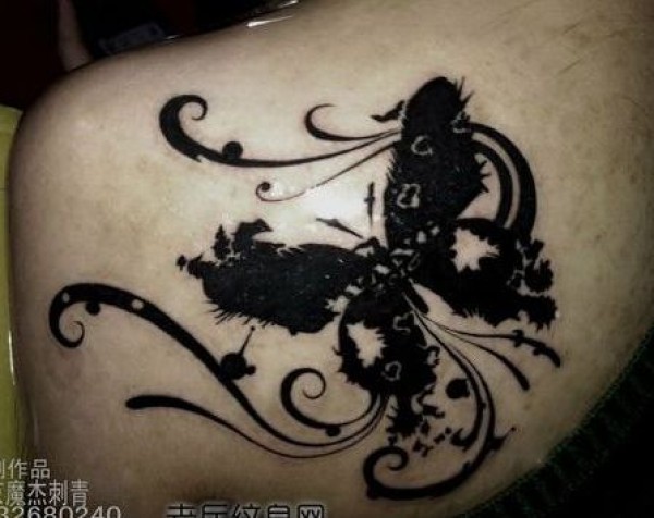 女生肩背图腾蝴蝶纹身图案_蝴蝶纹身图案大全_纹身图吧