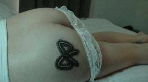 女孩子臀部精美时尚的蕾丝蝴蝶结纹身图案_蝴蝶纹身图案大全_纹身图吧