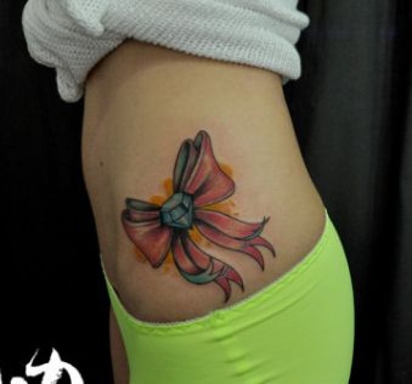 女孩子腰部精美流行的钻石蝴蝶结纹身图案_蝴蝶纹身图案大全_纹身图吧