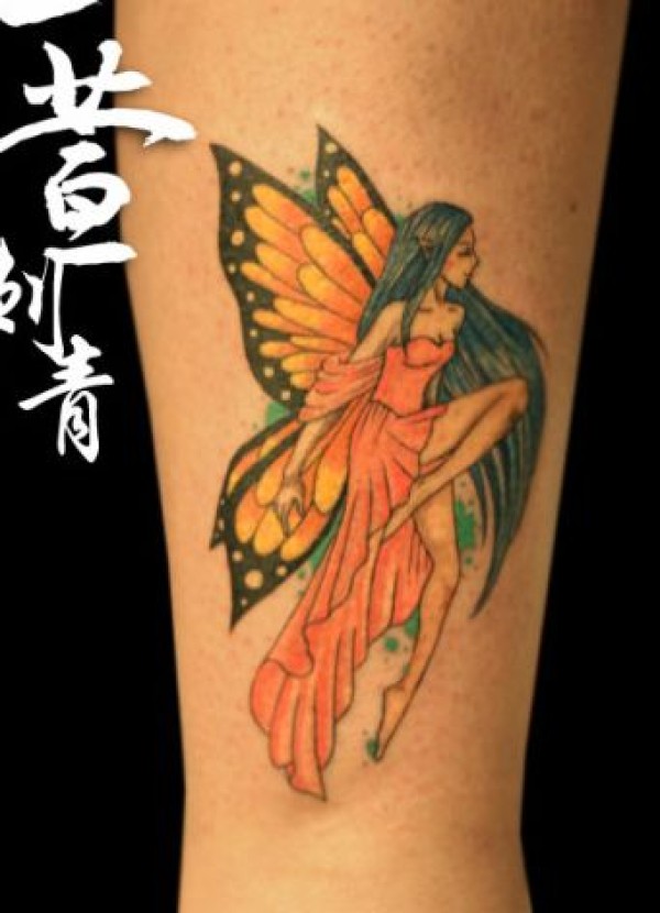 女生腿部好看的蝴蝶精灵纹身图案_蝴蝶纹身图案大全_纹身图吧