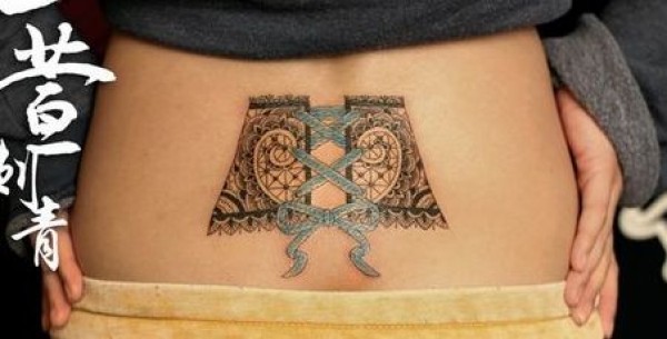女孩子腰部图腾蕾丝蝴蝶结纹身图案_蝴蝶纹身图案大全_纹身图吧