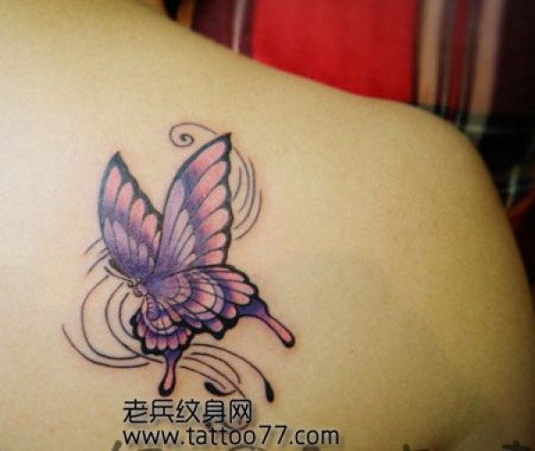 女生肩部彩色蝴蝶纹身图案_蝴蝶纹身图案大全_纹身图吧