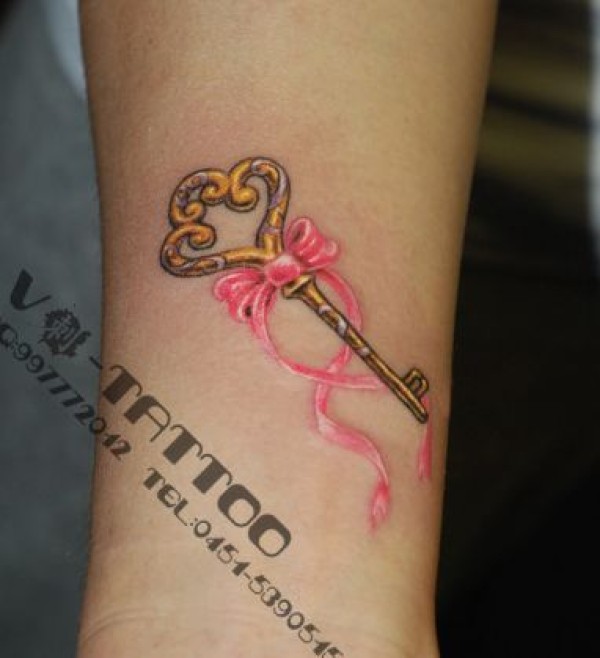 手臂彩色钥匙蝴蝶结纹身_蝴蝶纹身图案大全_纹身图吧