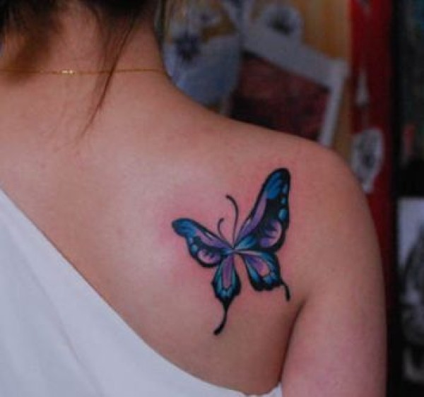 女生肩部流行的彩色蝴蝶纹身图案_蝴蝶纹身图案大全_纹身图吧
