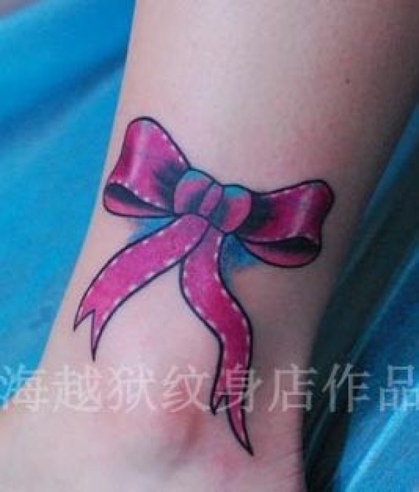 女孩子腿部彩色蝴蝶结纹身图案_蝴蝶纹身图案大全_纹身图吧