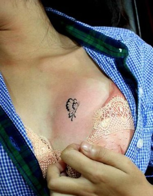 女孩子胸部可爱小巧的图腾蝴蝶纹身图案_蝴蝶纹身图案大全_纹身图吧