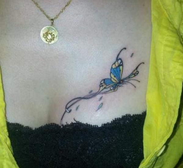 女生胸部精美的彩色蝴蝶纹身图案_蝴蝶纹身图案大全_纹身图吧