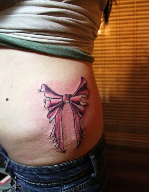 女孩子腰部彩色蝴蝶结纹身图案_蝴蝶纹身图案大全_纹身图吧