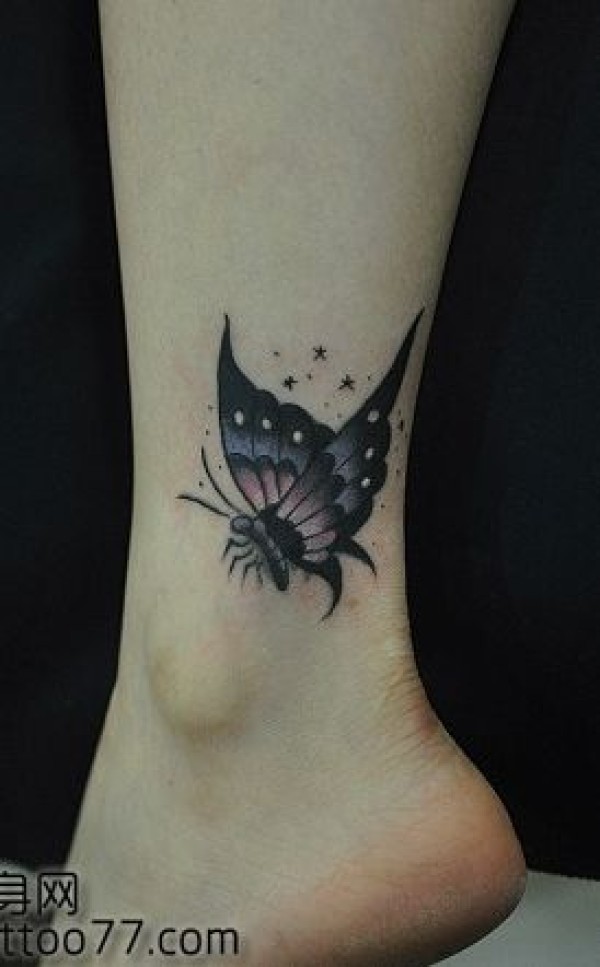 女孩子脚踝处彩色蝴蝶纹身图案_蝴蝶纹身图案大全_纹身图吧