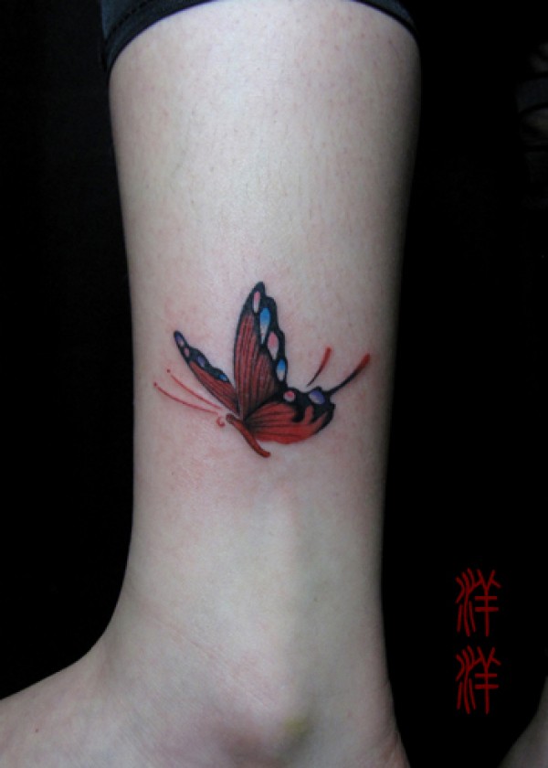 女孩子腿部彩色蝴蝶纹身图案_蝴蝶纹身图案大全_纹身图吧