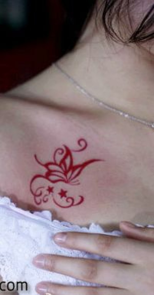 美女肩部彩色图腾蝴蝶纹身图案_蝴蝶纹身图案大全_纹身图吧