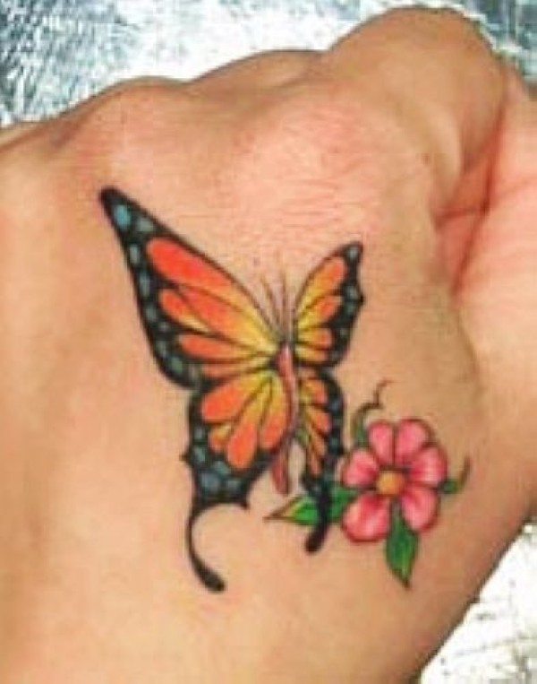 手背彩色蝴蝶纹身_蝴蝶纹身图案大全_纹身图吧
