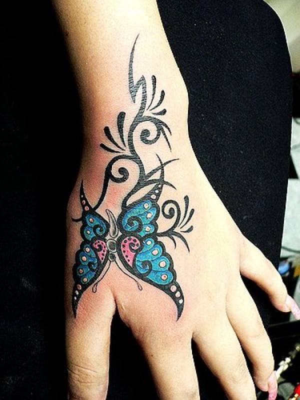 手背彩色蝴蝶纹身_蝴蝶纹身图案大全_纹身图吧