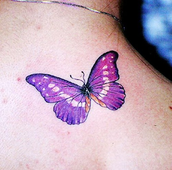 湖北黄石文身店一款色彩鲜艳紫色蝴蝶纹身图_蝴蝶纹身图案大全_纹身图吧