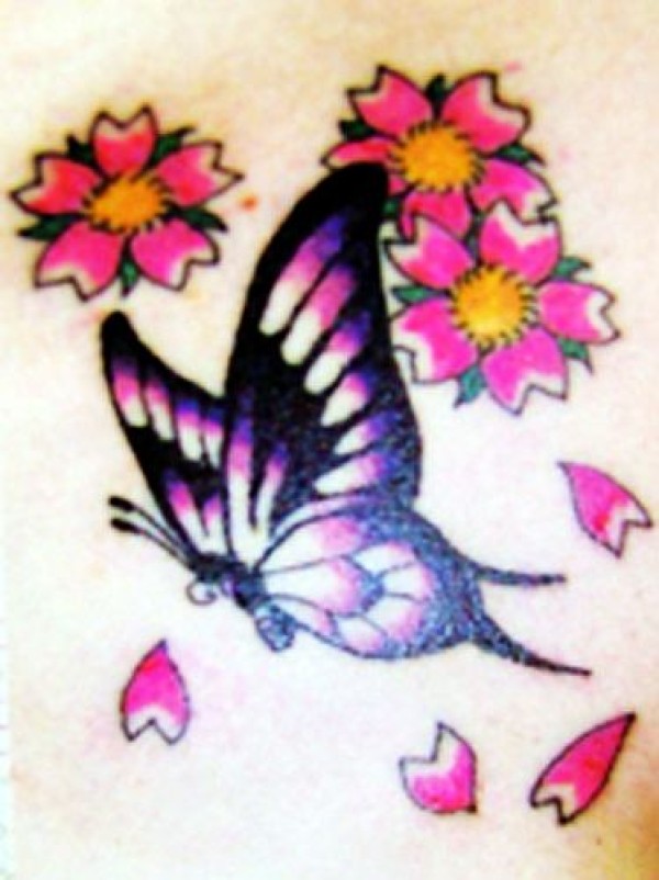 武汉老兵纹身店蝴蝶樱花纹身图案图片_蝴蝶纹身图案大全_纹身图吧