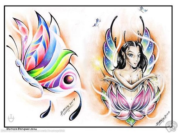 湖北仙桃刺青店七彩蝴蝶精灵纹身(tattoo)图_蝴蝶纹身图案大全_纹身图吧