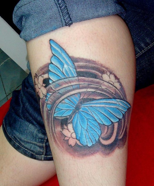 腿部蝴蝶纹身_蝴蝶纹身图案大全_纹身图吧
