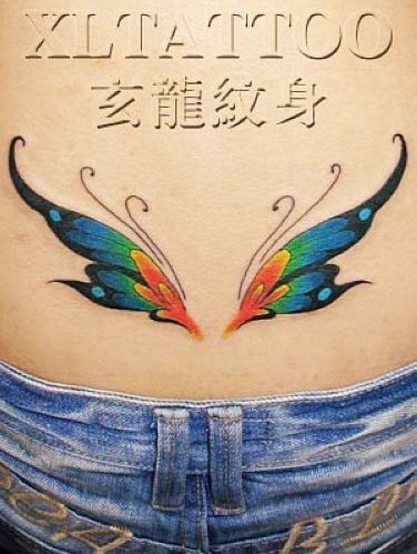 武汉专业纹身店后腰部蝴蝶翅膀纹身图案图片_蝴蝶纹身图案大全_纹身图吧