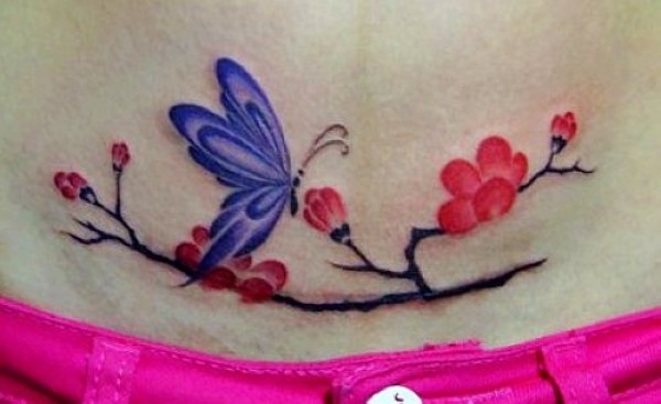 武汉专业老兵纹身店腹部梅花蝴蝶纹身图案图_蝴蝶纹身图案大全_纹身图吧