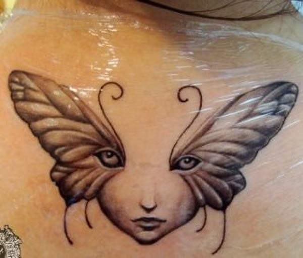 经典另类颈部蝴蝶翅膀精灵纹身图案纹身图片_蝴蝶纹身图案大全_纹身图吧
