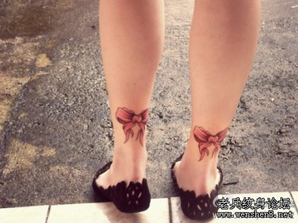 腿部蝴蝶结纹身图案纹身图片_蝴蝶纹身图案大全_纹身图吧