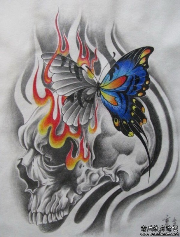 骷髅蝴蝶纹身图案纹身图片武汉好的纹身店为_蝴蝶纹身图案大全_纹身图吧