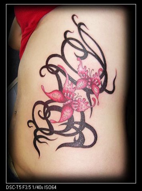 腰部彩色蝴蝶纹身_蝴蝶纹身图案大全_纹身图吧