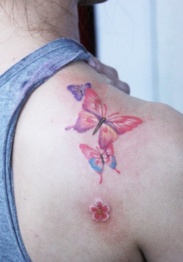 腰部彩色蝴蝶纹身_蝴蝶纹身图案大全_纹身图吧