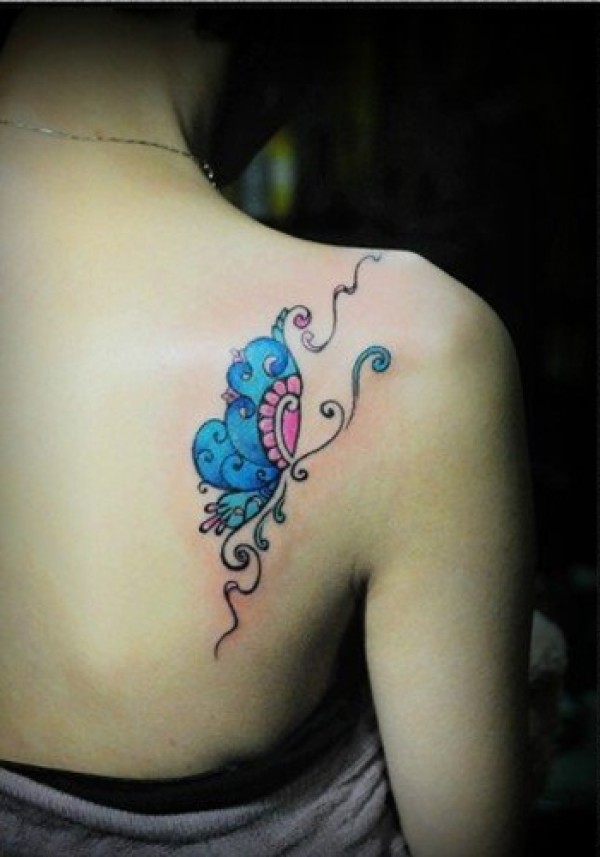 女生肩背彩色蝴蝶纹身_蝴蝶纹身图案大全_纹身图吧