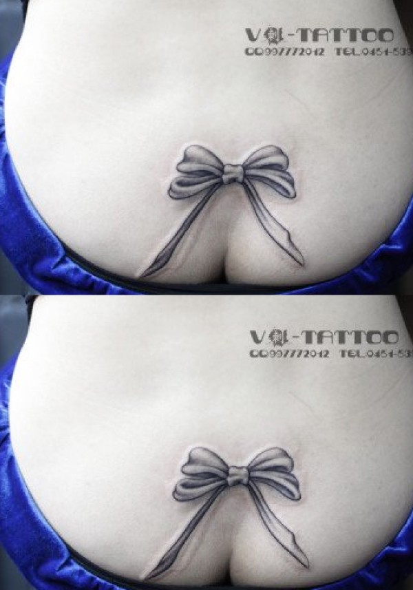 美女腰部小巧蝴蝶结纹身_蝴蝶纹身图案大全_纹身图吧