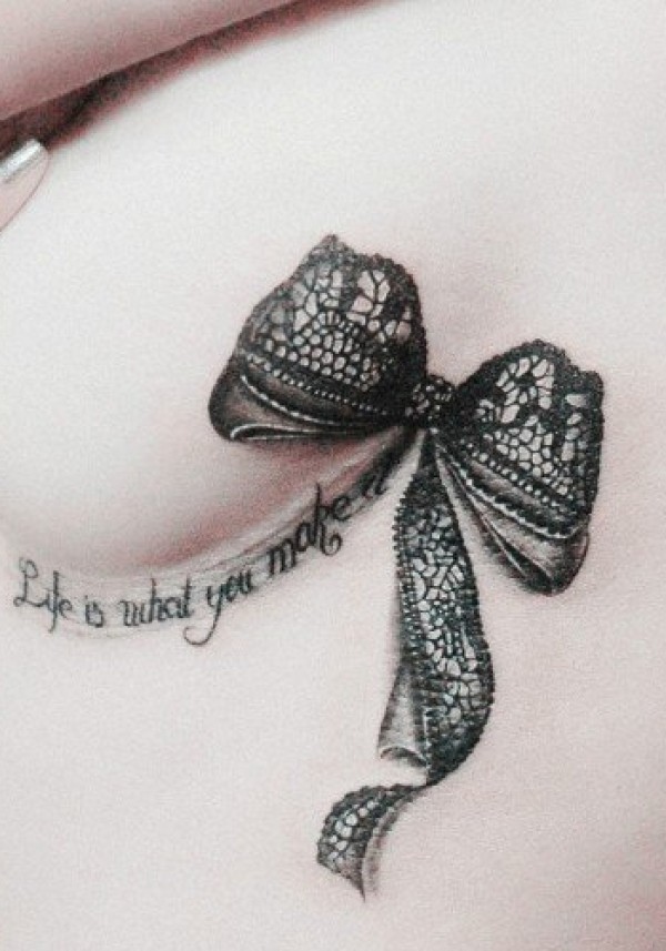 美女胸部精美蕾丝蝴蝶结纹身_蝴蝶纹身图案大全_纹身图吧