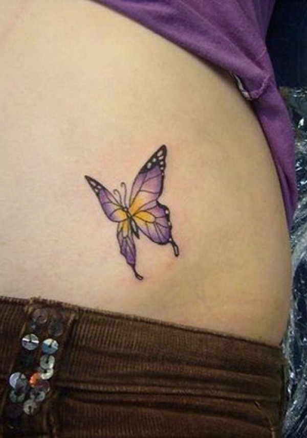 腰部彩色蝴蝶纹身_蝴蝶纹身图案大全_纹身图吧
